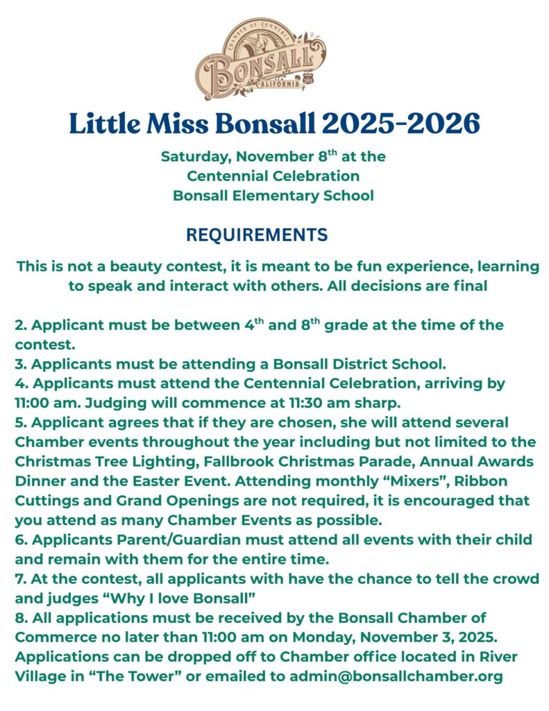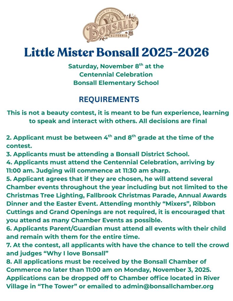 Contact us: 760-630-1933 or admin@bonsallchamber.org
