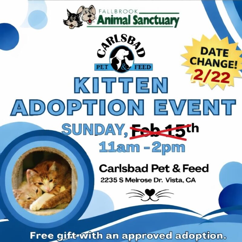 UPDATE… New date for our Carlsbad adoption event. It’s now on 2/22!